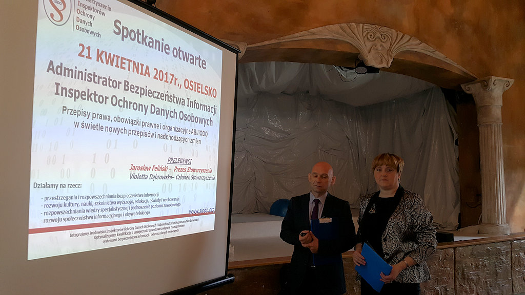 Dnia 21 kwietnia 2017 r. odbyło się kolejne spotkanie otwarte Stowarzyszenia Inspektorów Ochrony Danych Osobowych. Spotkanie poprowadził Pan Jarosław Feliński – Prezes Stowarzyszenia Inspektorów Ochrony Danych Osobowych. Serdeczne podziękowania za pomoc w zorganizowaniu spotkania dla Urzędu Gminy w Osielsku oraz Gminnego Ośrodka Kultury w Osielsku.