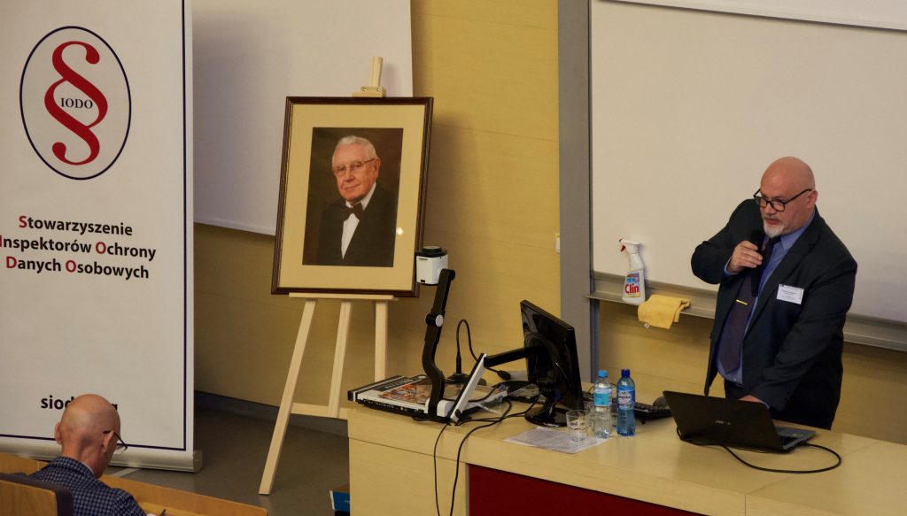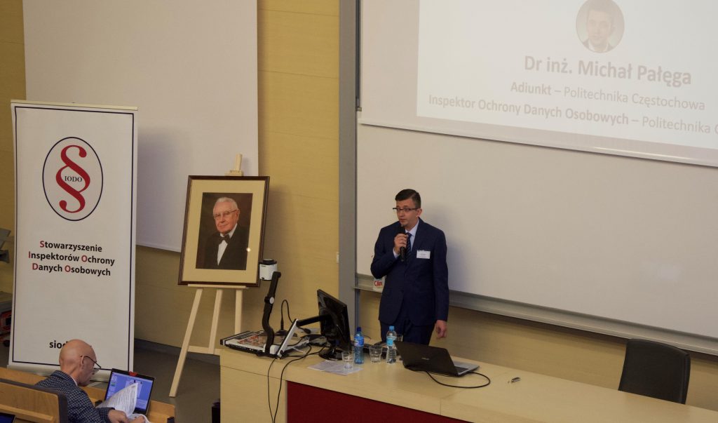 Dr inż. Michał Pałęga reprezentujący Politechnikę Częstochowską w wystąpieniu skupił się na temacie „IODO & ASI versus RODO” obejmującym spektrum spraw związanych ze współpracą obu funkcyjnych w organizacji. Wykazał zależności
